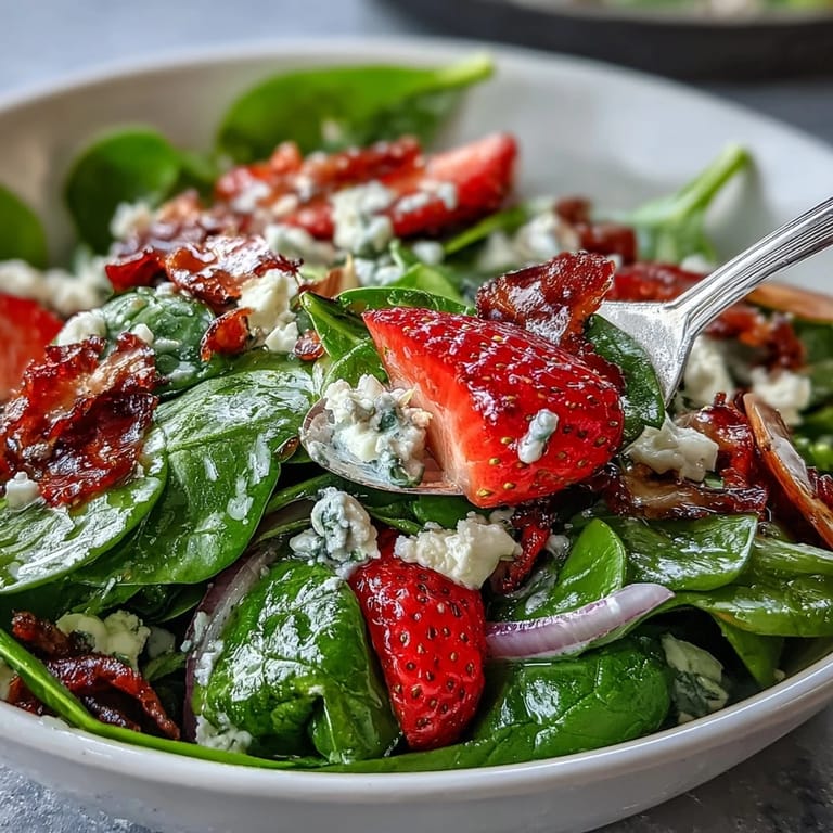 Save My sister showed up at my door last spring with a farmers market haul and absolutely no plan, just a bag of the most perfect strawberries I'd ever seen. We stood in my kitchen passing them back and forth, eating a few, laughing about how we couldn't possibly waste them on anything ordinary. That afternoon, we threw together this salad almost by accident, layering baby spinach with those berries, some cheese, and a dressing we made right there in a jar. It became the salad we make whenever we need to feel like spring showed up on our plates.