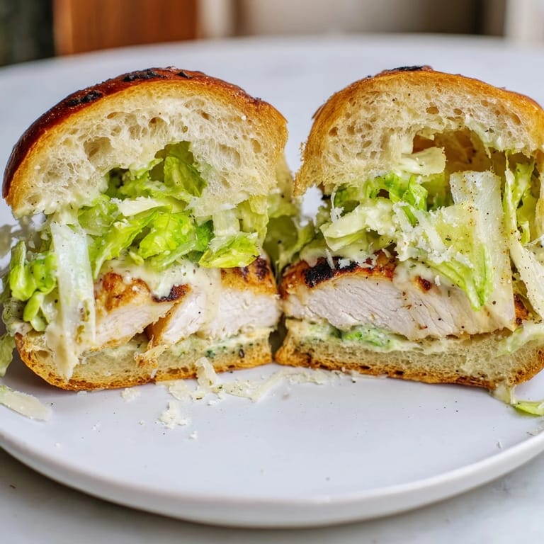 Save The smell of garlic and char from the grill always pulls me back to late summer evenings when dinner needed to be fast but still feel like a win. I used to overthink sandwiches, piling on too much or second-guessing the bun choice, until I realized that a well-grilled chicken breast and a punchy Caesar dressing could do all the heavy lifting. This sandwich became my weeknight answer when I wanted something satisfying without the fuss. It tastes like effort, even when you're moving quickly.