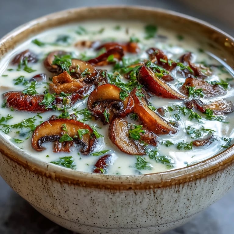 Save The secret to this soup's incredible depth lies in the initial sautéing process. As the mushrooms brown in the butter and oil, they release their natural moisture and develop a caramelized flavor that serves as the backbone of the entire dish.