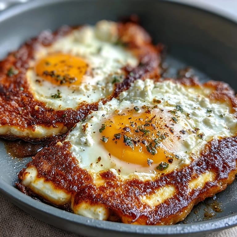 Save The smell of feta hitting hot oil still makes my stomach growl, even after all these years. I discovered this technique by accident one Sunday morning when I was too lazy to make proper spanakopita but craving those flavors. The way the salty cheese transforms into a crispy, golden platform for eggs felt like discovering a secret shortcut to breakfast heaven. My kitchen smelled like a Greek diner, and I knew I had stumbled onto something special.
