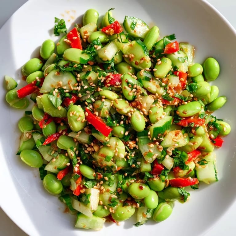 Save The first time I made this edamame salad was for a summer potluck where I had exactly twenty minutes to contribute something edible. I grabbed whatever was in my crisper drawer, boiled those frozen edamame bags I always forget about, and threw together this bright crunchy mess that somehow disappeared faster than the fancy pasta salad someone spent hours on. Now it is my go to when I need something that looks impressive but takes almost zero effort.