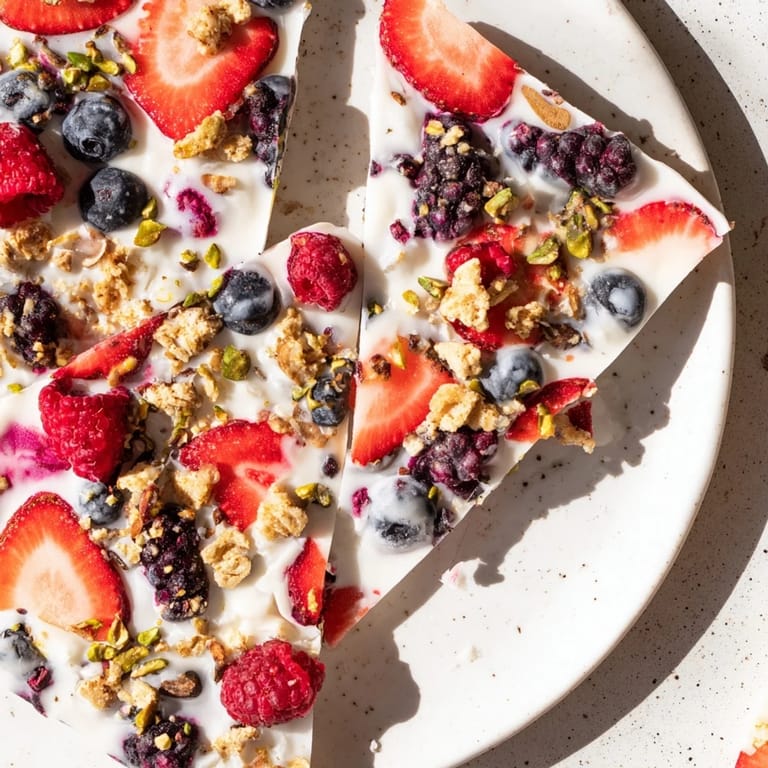 My partner laughed when I presented these frozen shards like I'd invented something revolutionary, but by week two they were stealing pieces from the container before breakfast. There's something about the combination—the slight tartness of the yogurt, the cold crunch of granola, the way the berries are still a little tart from freezing—that makes people want another piece. It became the thing I'd bring to potlucks when someone asked for something healthy, and somehow it always got eaten first.