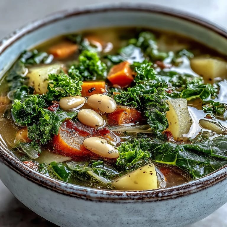 Save My neighbor stopped by on a gray Tuesday morning with a bundle of kale from her garden, and honestly, I wasn't sure what to do with it. She mentioned her grandmother's soup, something simple but filling, and by that afternoon I'd created this version—a recipe that's become my go-to when I want something that feels both nourishing and deeply comforting. The beauty of it is how the earthiness of the kale plays against the sweetness of the root vegetables, all bound together with creamy beans. Every bowl tastes like someone actually cared enough to slow down and cook.