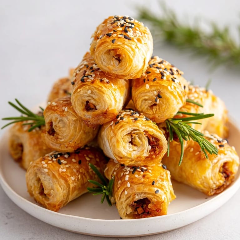 A simple honey mustard dip complements the sausage rolls, balancing savory and sweet notes.