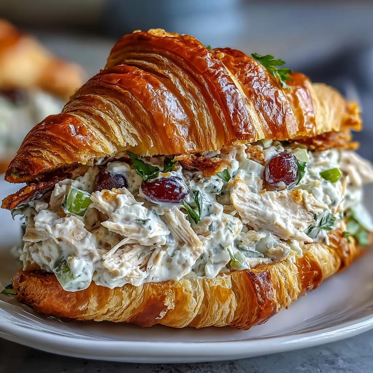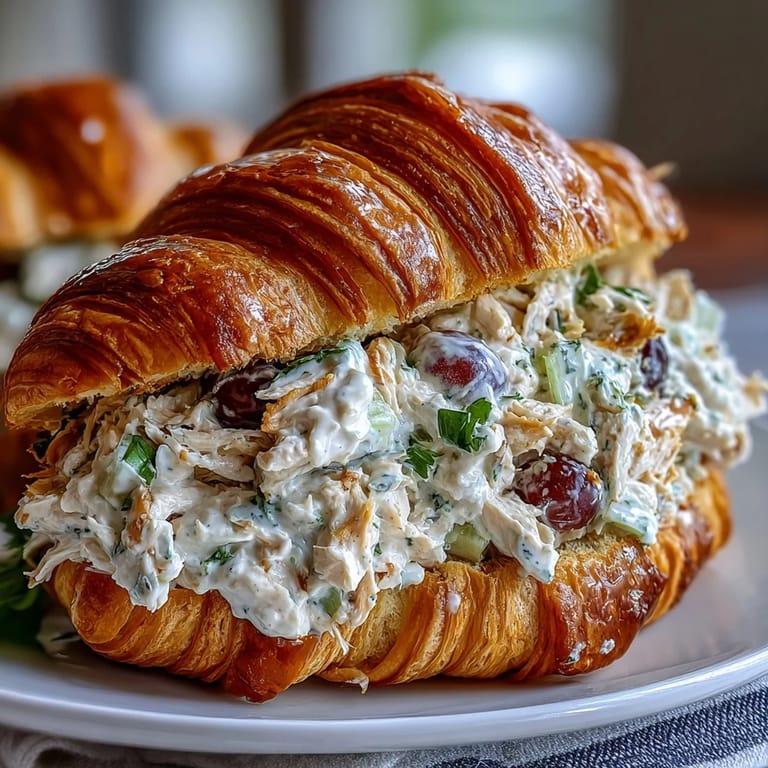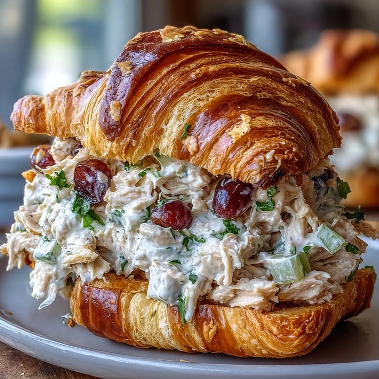 Save There's something about assembling a chicken salad sandwich that feels like you're preparing for an adventure, even if that adventure is just spreading a blanket in the backyard. My neighbor once mentioned she'd been making these croissant sandwiches for her family's lake trips, and the way she described biting into the buttery pastry with that creamy, grape-studded filling made me realize I'd been missing out on one of summer's simplest pleasures. The combination of sweet fruit, tender chicken, and flaky bread turned out to be exactly what I didn't know I needed.