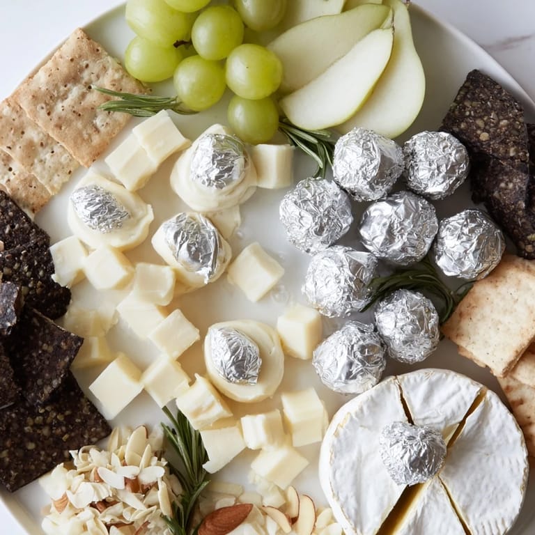 - Silver-wrapped dark chocolate truffles: These aren't just flavor, they're your color story, glinting like stars against pale cheeses.