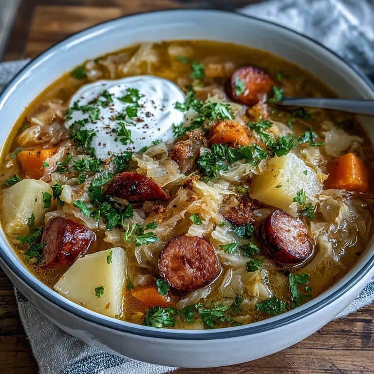 Save My neighbor Elena taught me this soup on a gray afternoon when she caught me eyeing her garden fence, where jars of homemade sauerkraut lined the shelf like little treasures. She laughed and said every good Central European kitchen keeps a pot of this simmering, especially when the weather turns cool. What started as a casual kitchen visit became a lesson in how fermented cabbage transforms into something that tastes like comfort and actually makes your gut happier. The soup came together faster than I expected, filling the kitchen with a tangy, savory smell that made me understand why Elena never really wrote down the recipe—she just made it by feel. Now it's become my go-to when I want something warming that doesn't feel heavy.