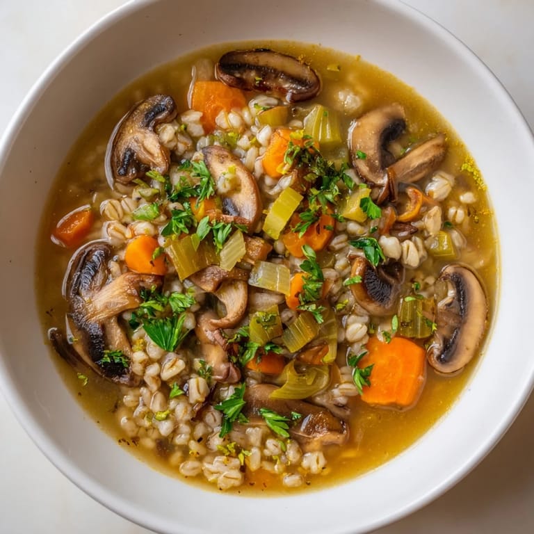 Save A rustic and hearty soup blending wild mushrooms, tender barley, and aromatic vegetables in a single pot—perfect for cozy evenings and nourishing, light meals.